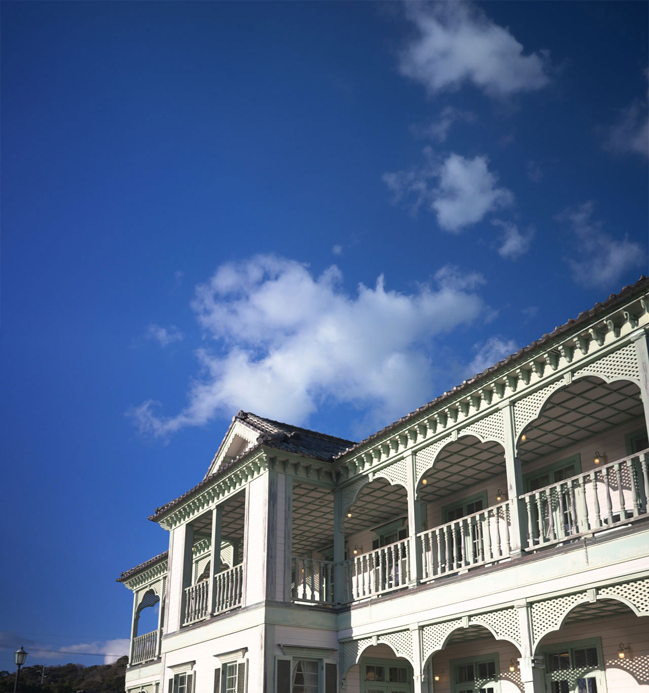 三角西港は「明治日本の産業革命遺産」として世界文化遺産に登録されており、レトロな建物が並ぶ景観が特徴的です。三角西港から徒歩5分ほどの場所にある法の館(旧三角簡易裁判所)は、るろうに剣心の撮影が行われたロケ地としても有名で、西港とともに多くの観光客が訪れるスポットになっています。