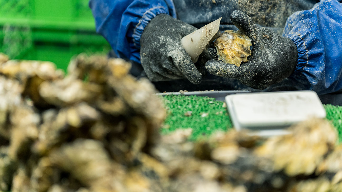 加熱しても身が縮まない牡蠣にこだわり、より美味しい牡蠣にするために生産漁場で徹底した管理を行っています。食の「安全・安心」を最優先に、定期的に検査基準の厳しい牡蠣の衛生検査を行い、出荷前には一粒づつ、手間を惜しまず手作業で殻を磨き付着物を取り除いています。また、ろ過した紫外線殺菌海水をかけ流しで24時間殺菌処理を行って出荷を行います。